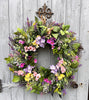 Bring the easy beauty of the countryside to your door with the Riverside Cottage Wreath. Inspired by wild riverbanks and sun-dappled cottage gardens, this wreath is a joyful mix of soft pinks, buttery yellows, gentle purples, and lush green foliage.