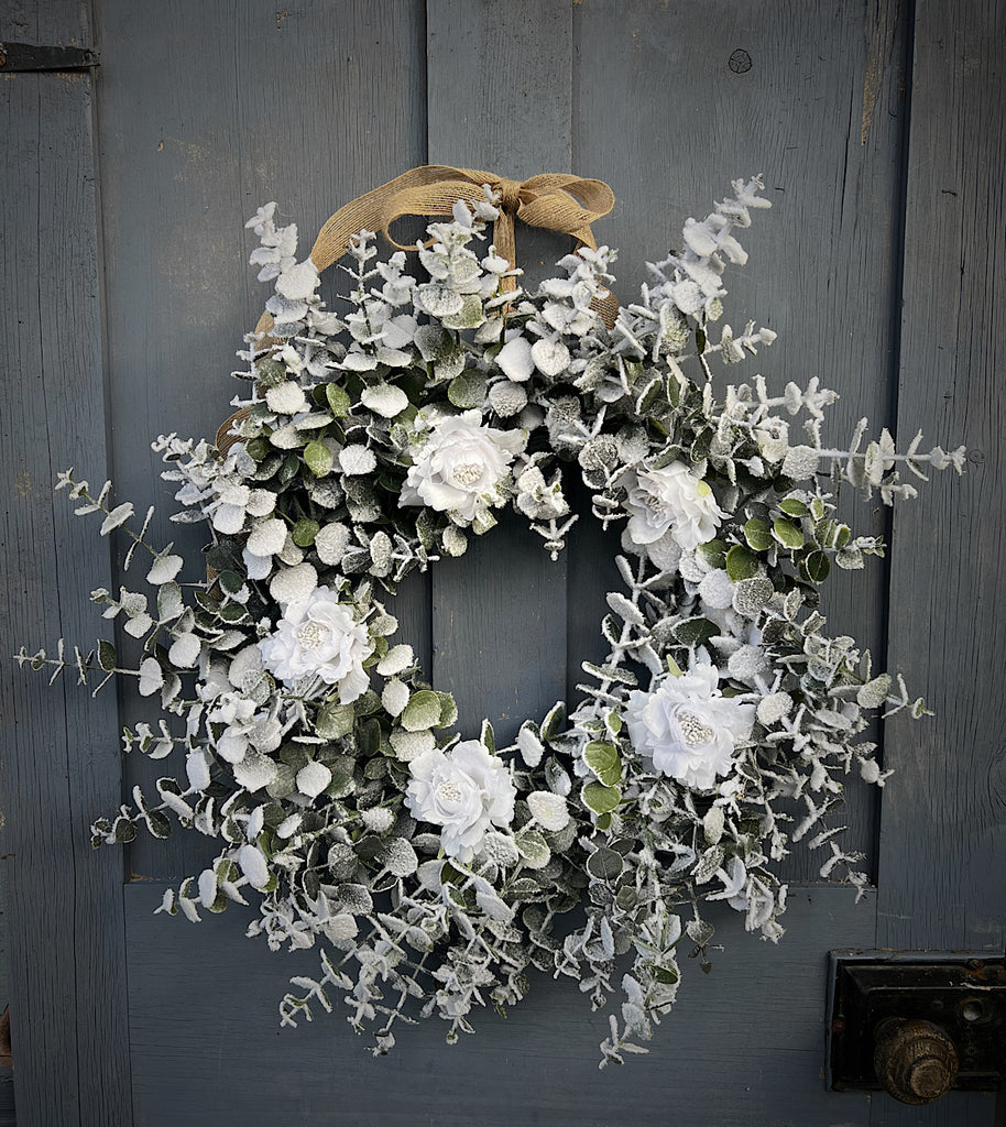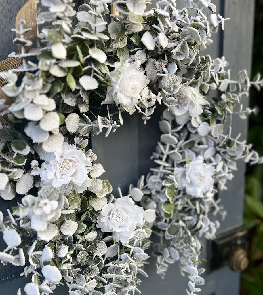 Bring the beauty of a winter into your home with our Frosted Spiral Eucalyptus entwined with white rose. The soft frosted leaves capture the essence of the winter season. Perfect for creating a serene, frosty atmosphere that will complement your winter and spring decor beautifully.